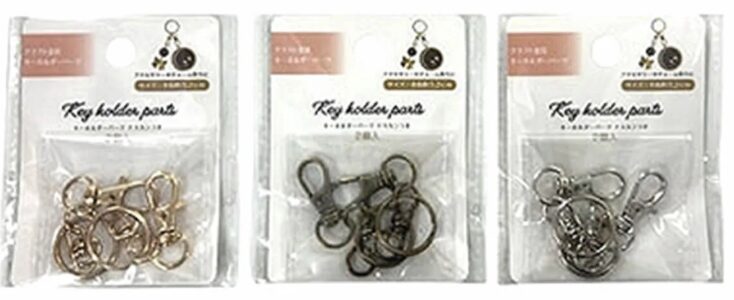 セリアのナスカンは、デザインが魅力。シンプル系・カワイイ系など、ハンドメイド作品の雰囲気に合わせて選べます。また見た目だけでなく、基本仕様も押さえているため、まずはデザインを重視したい人向けとして最適。