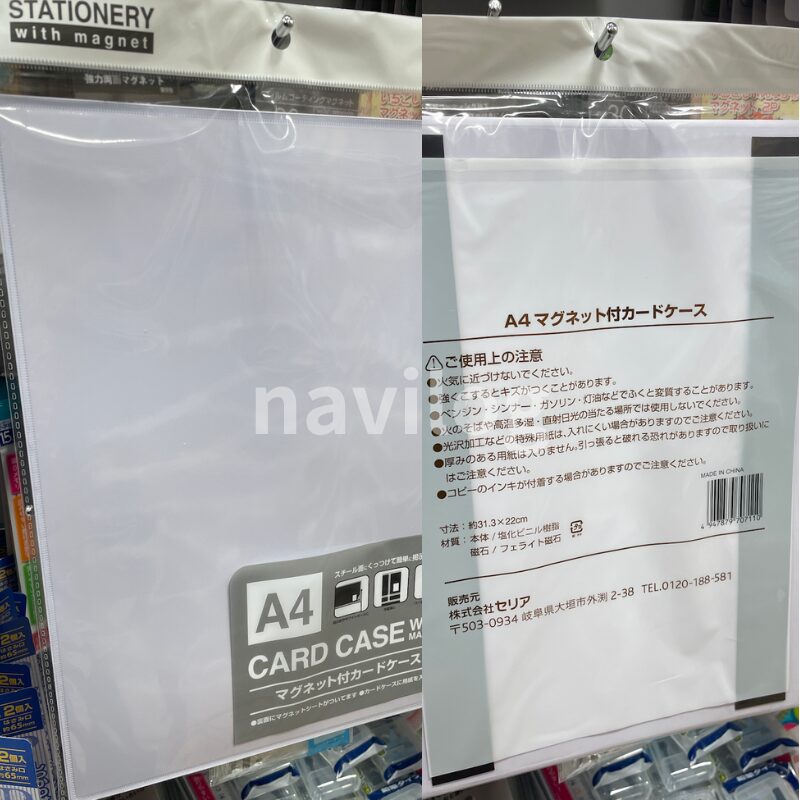 | 備考 | 本体サイズ(約):(内寸)210×297mm 材質・成分:塩化ビニル樹脂・磁石 |