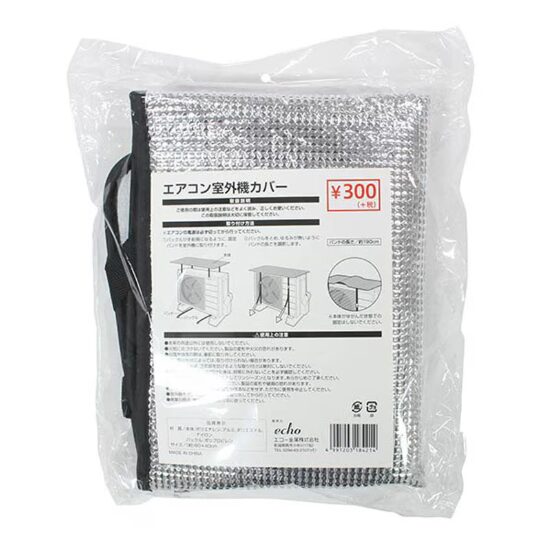 ダイソーでは、直射日光対策に便利な室外機用日除けが手軽に手に入ります。アルミ蒸着素材による遮熱仕様で、夏場の直射日光をやわらかく反射し、室外機の表面温度上昇を抑えるのがポイント。ゴムやひもで簡単に取り付けられるため、ベランダ設置や一時的な使用にも向いています。