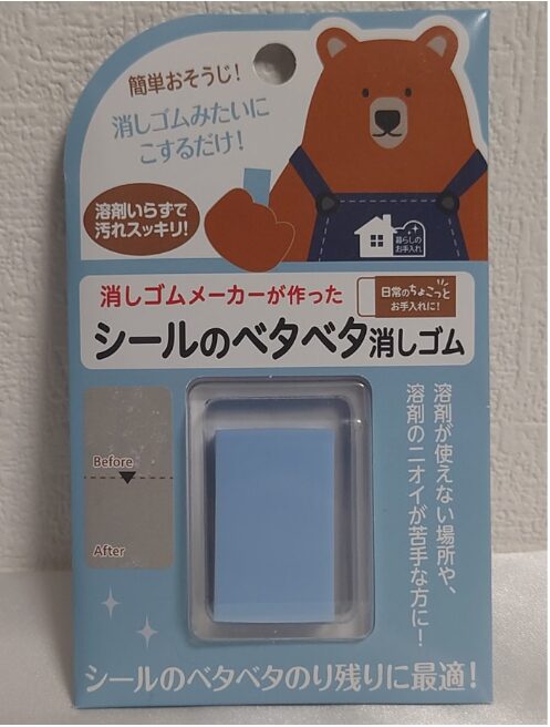 70mLのスプレータイプは、広い範囲にサッと吹きかけられて作業がスムーズ。液体タイプは少量でもしっかり効果を発揮するコスパの良さが魅力で、細かい部分への使用に最適です。ユニークなのが「シールのベタベタ消しゴム」。消しゴムメーカーが作った専用品で、液体を使わずこするだけでベタつきを落とせるため、液剤の匂いが苦手な方や小さなお子さんがいるご家庭でも安心して使えます。