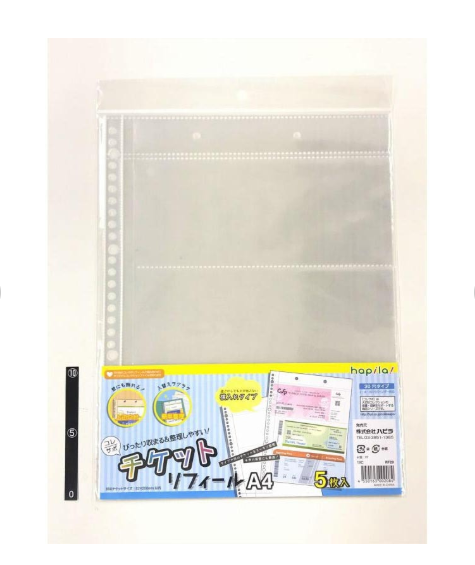 商品名クリアホルダー(長形4号)チケット用スリーブチケットリフィール30穴3ポケット5枚入PPクリアーポケット チケット用