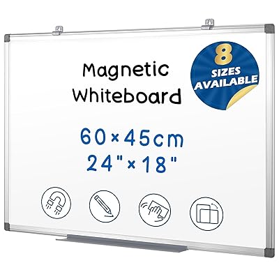 この商品は、A2サイズ(約440×600mm)壁掛けタイプで、ボード本体・マーカー・マグネット・イレーザー・トレーが揃っています。特長は、ほど良いサイズ感と軽さ、そして書き消しのしやすさです。