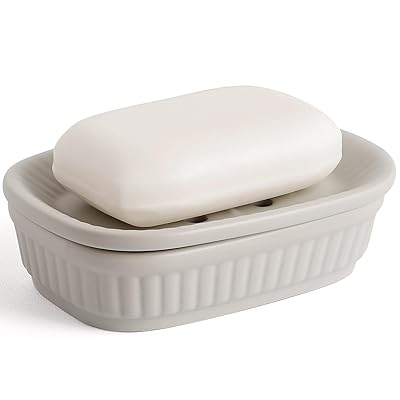 高品質な陶器・セラミック素材を採用し、表面が滑らかでお手入れが簡単なのが特長。2重トレー構造と水切れ穴により、石けんを長く乾かし清潔に保つ排水設計で、石鹸水が溜まってヌメリの原因になるのを防ぎます。